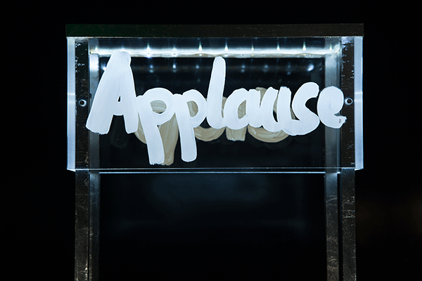 Die Welle ist mein Sinnbild für Bewahren und Veränderung. Sie besteht aus über 1500 Blättern Shakespeare - die ersten eineinhalb Bände meiner fünfbändigen Shakespeare-Gesamtausgabe. Er ist vor über 400 Jahren gestorben und wir bewahren jedes einzelne Wort - und sie sind es wert, aufgehoben zu werden. Gleichzeitig leben wir alle in dem Modus des `Panta rhei´, was bedeutet, dass alles fließt. Wie das Wasser, das seine Erscheinungsform ständig ändert, einmal Wolke ist und einmal Fluss. Den Abschluss bilden LEDs, welche die Welle funkeln lassen.
