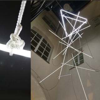 ist für den Lichthof des Degginger, dem Kulturzentrum in der Altstadt Regensburgs entstanden. In fast Zehn Meter Höhe fangen die Lichtstangen von einem Dreieck ausgehend an, optisch nach unten zu fallen. So beleuchtet der LichtFall nicht nur den Raum, sondern gibt ihm Struktur und läd ihn mit besonderer Athmosphäre auf.