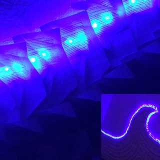 The wave is my symbol for preservation and change. It consists of over 1500 sheets of Shakespeare - the first one and a half volumes of my five-volume complete Shakespeare edition. He died over 400 years ago and we preserve every single word - and they are worth preserving. At the same time, we all live in the mode of 'panta rhei', which means that everything flows. Like water, which constantly changes its manifestation, being cloud at one time and river at another. The finishing touch is LEDs, which make the wave sparkle.
